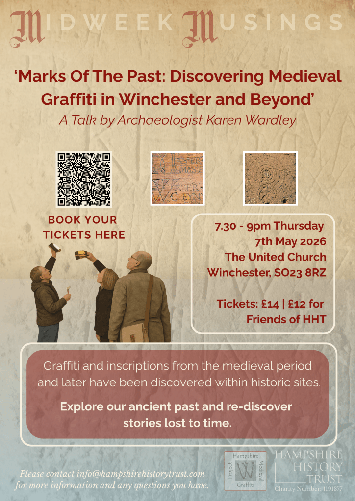Join the Hampshire Medieval Graffiti Project for an illuminating look at the hidden marks left behind by medieval hands. Since its launch in 2016, the volunteer‑led project has been uncovering centuries‑old inscriptions across Winchester and the wider county, revealing stories carved into stone that have long gone unnoticed.